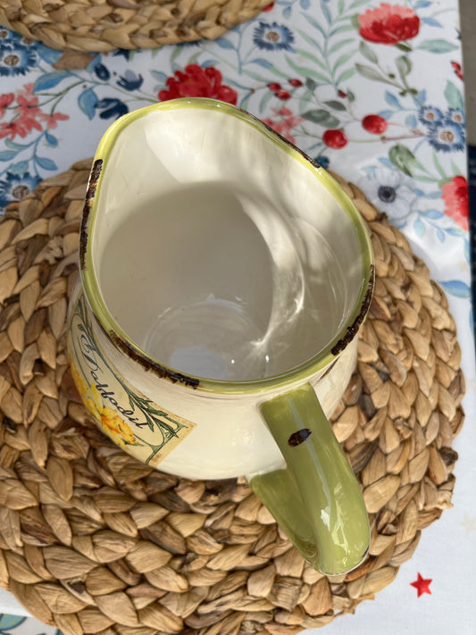 Rustic Daffodil Pitcher - Cream with Sage Green and Brown Accents - Hand-Painted Ceramic Décor